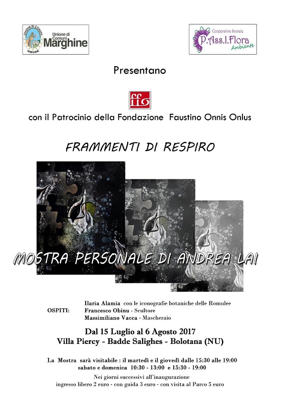 La mostra nel C.E.A.S. di Badde Salighes avrà come ospiti, oltre Andrea Lai, Ilaria Alamia con le Iconografie Botaniche delle Romulee, lo scultore Francesco Obinu Scultore e il Mascheraio Massimiliano Vacca.