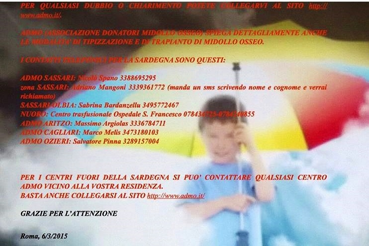 “Siamo i genitori di Andrea, un bambino di 9 anni di Orotelli ( NU) che, affetto da leucemia dal 2010, è in cura presso l'Ospedale Pediatrico Bambino Gesù di Roma , Dipartimento di Onco-Ematologia.