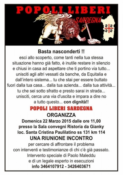 L'incontro è organizzato da Popoli Liberi Sardegna.