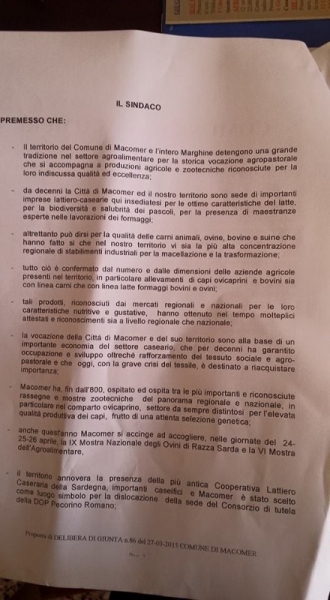 - da decenni la Città di Macomer ed il nostro territorio sono sede di importanti imprese lattiero-casearie qui insediatesi per le ottime caratteristiche del latte, per la biodiversità e salubrità dei pascoli, per la presenza di maestranze esperte nelle lavorazioni dei formaggi;