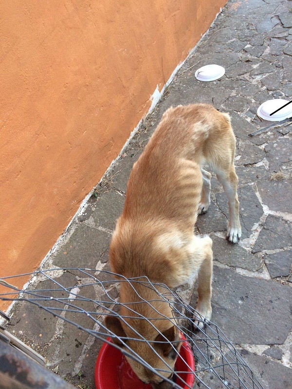 Magro, affamato e assetato, da quanto riferito il cane sarebbe da circa un anno in condizioni precarie.