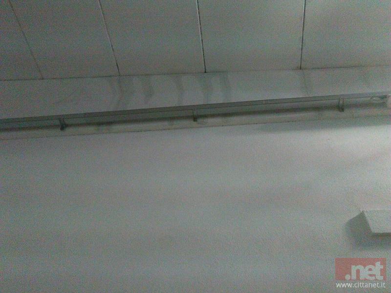 Pare che all'origine delle infiltrazioni vi sia un atto di vandalismo: qualcuno avrebbe infatti lesionato i fogli di finta tegola che ricoprono il tetto della struttura, agevolando in tal modo le infiltrazioni d'acqua.