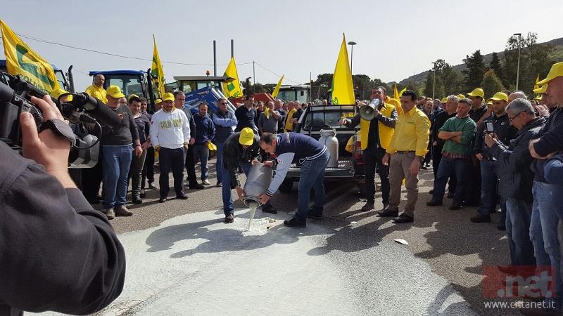 Hanno scelto come gesto dimostrativo di rovesciare dei bidoni di scotta sull'asfalto, a significare il fatto che gli industriali caseari minacciano la chiusura dei caseifici perchè ci sarebbe una sovraproduzione di pecorino.