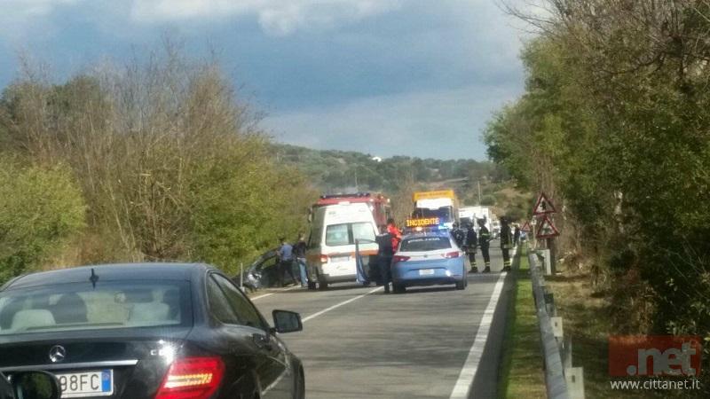 La strada è stata bloccata in entrambi i sensi di marcia: sul posto la Polizia, l'Ambulanza del 118 e i Vigili del Fuoco.