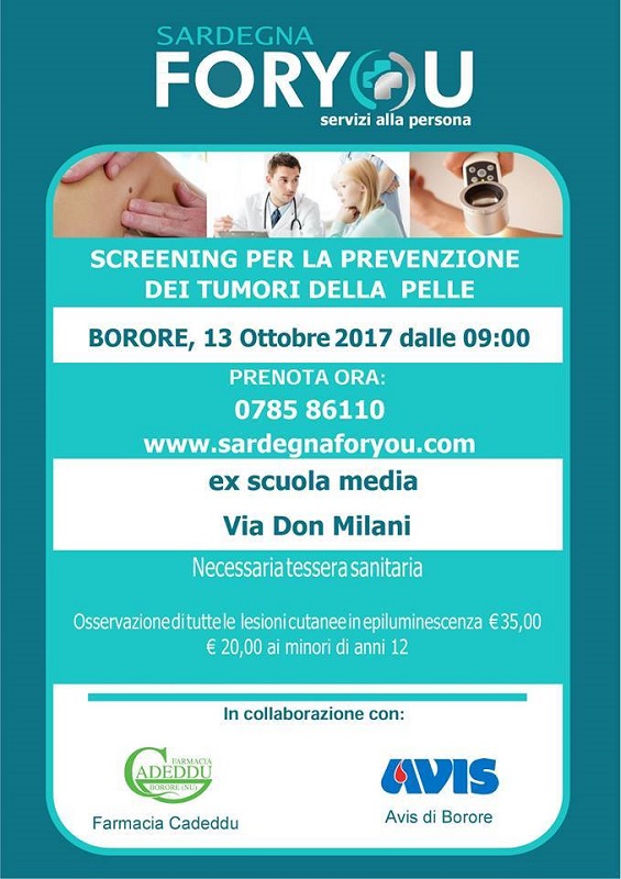 Tutto ciò in preparazione della giornata di Venerdì 13 ottobre, dalle ore 9:00 e presso i locali delle Ex scuole medie di Borore in Via Don Milani, dove verranno effettuati gli screening per la prevenzione dei tumori della pelle, i quali sono soggetti a prenotazione anticipata e che saranno seguiti dalla Dott.ssa Amadu.