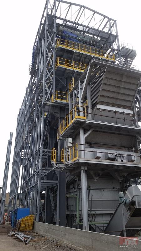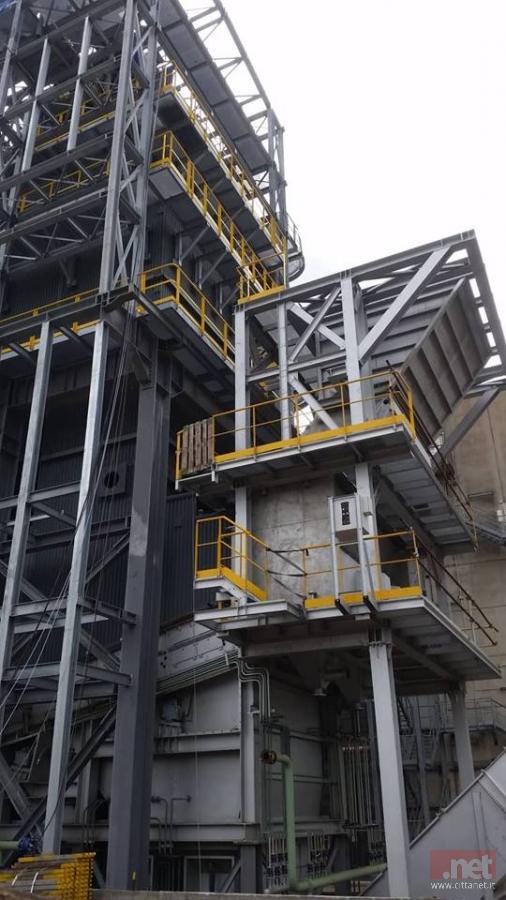 Una struttura enorme che sorge accanto al vecchio impianto (vedi foto in alto) e che culminerà con una sola ciminiera. I due vecchi comignoli, così come l'intera struttura dei due forni dismessi, andranno invece smontati successivamente con lavori ancora da appaltare.