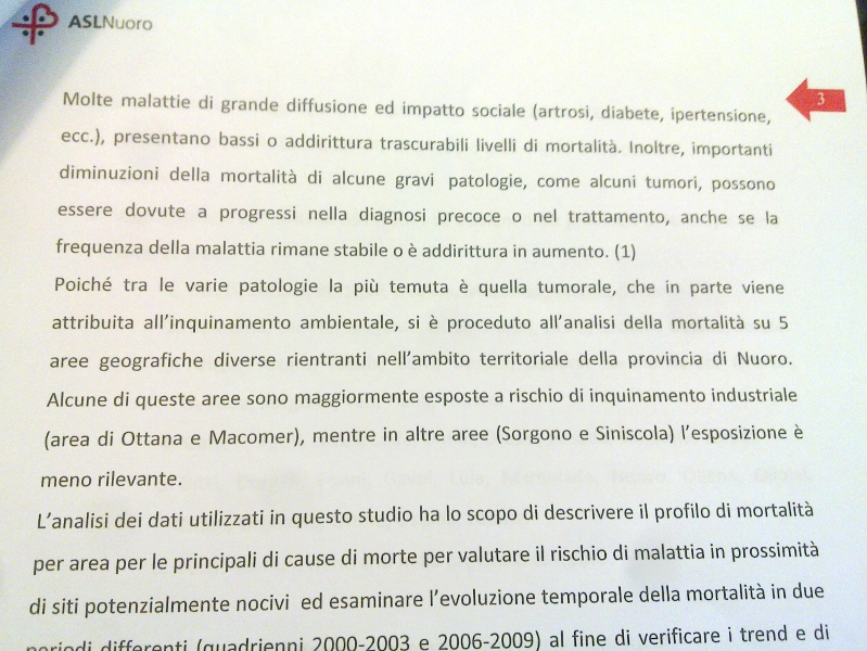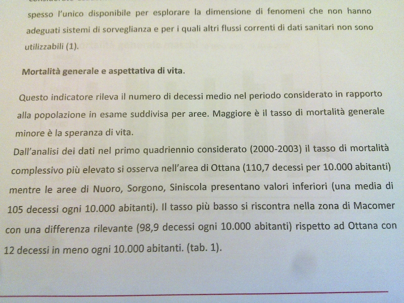 Tornando ai risultati dell'indagine, Succu ha affermato che “lo studio è sempre in continuazione e per questo non si può parlare di dati incompleti” (il documento della ASL scrive che “a causa di diversi ostacoli nella rilevazione dei dati, lo studio è ancora in corso” e che “tuttavia in via preliminare sono stati rilevati e analizzati i dati di mortalità per grandi gruppi di cause”).
