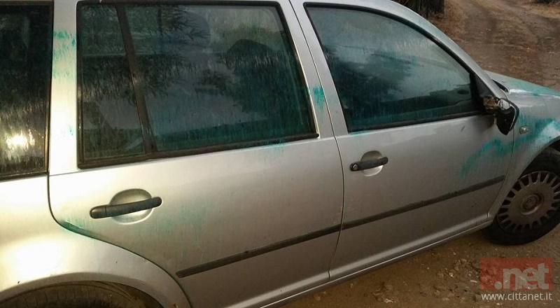 Durante la notte un'auto di proprietà di un imprenditore del paese è stata danneggiata: specchietti retrovisori stracciati e vernice verde ad imbrattarne la carrozzeria.